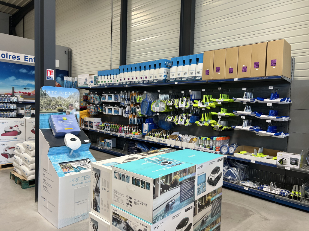 - Un magasin, situé dans la ZA du Bas Taulet à Pélissanne, où vous y trouverez une gamme étendue de produits en lien avec la piscine mais également l’arrosage pour le jardin.